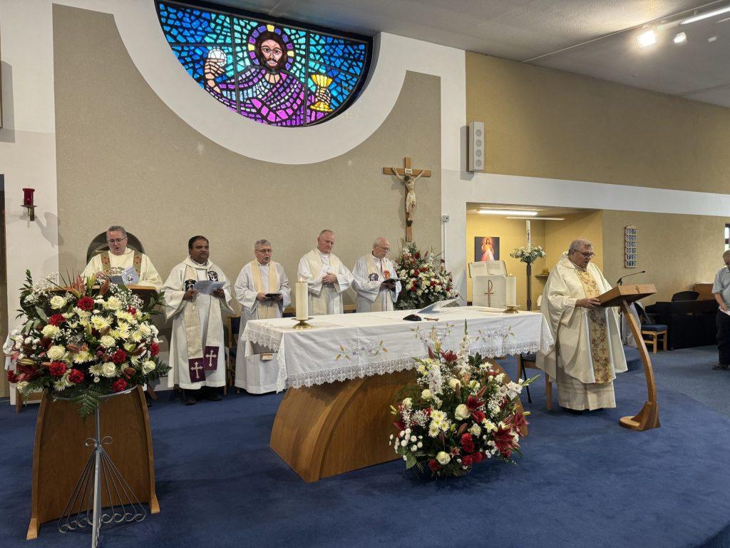 Over the weekend of 20/21 July 2024 the parish welcomed back our former parish priest of 28 years, Fr Tony Sultana, to celebrate the 50th anniversary of his ordination to the priesthood. Fr Tony was the main celebrant for the Vigil Mass at 5.30pm on Saturday 20 July exactly 50 years to the day since he was ordained. It was a tribute to the love within the Salesian community that Fr Gerry (the Salesian Provincial) and Fr Mervyn travelled from Bolton and back on the same day to support Fr Tony. We were delighted to welcome Brothers Michael, Joe and Malachi, Fr Peter B and Fr Pat (Rector) from the Salesian house in Farnborough. It was also such a joy to see so many former parishioners travelling to take part in the celebration as well as Fr Tony’s niece and family and local parishioners and friends.