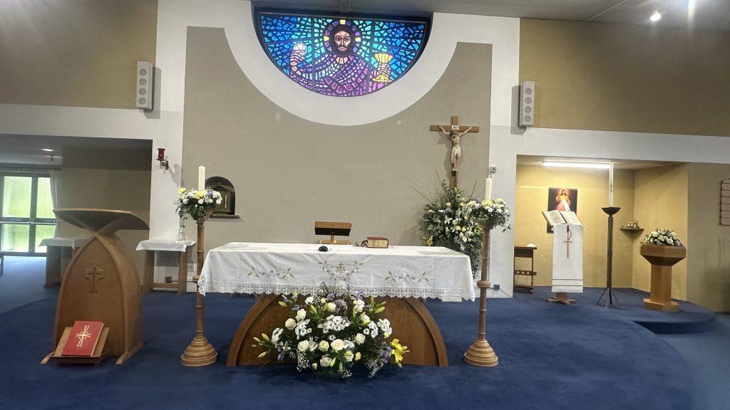 After the Good Friday liturgy on Friday 18th April 2025, the church was transformed in preparation for the Easter Masses which begin with the Easter Vigil on Saturday 19th April at 8.00pm. Our Flower Team have been very busy behind the scenes helping to make this transformation as can be seen from the pictures below.