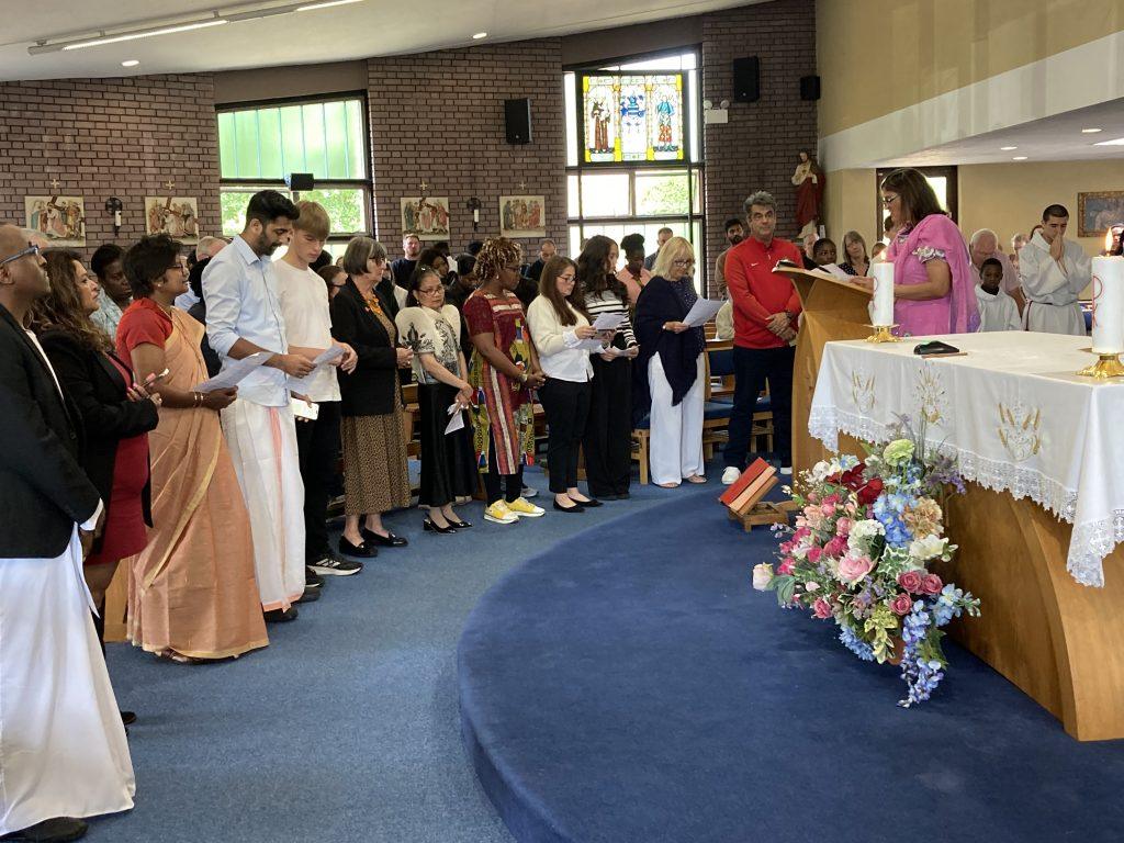 As part of our Pentecost celebration we wanted to celebrate our parish’s diversity.  At the 10.30am Mass, we had bidding prayers in 12 different languages and the ‘Our Father’ first sung in Swahili and then everyone joined in speaking in their mother tongue.  So powerful!
