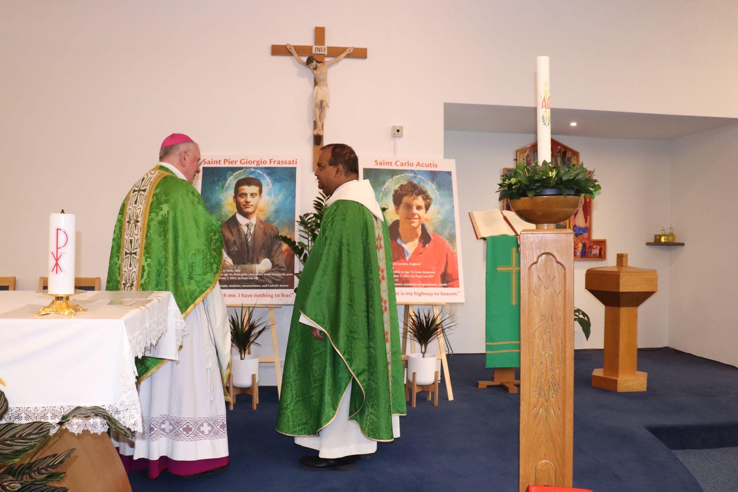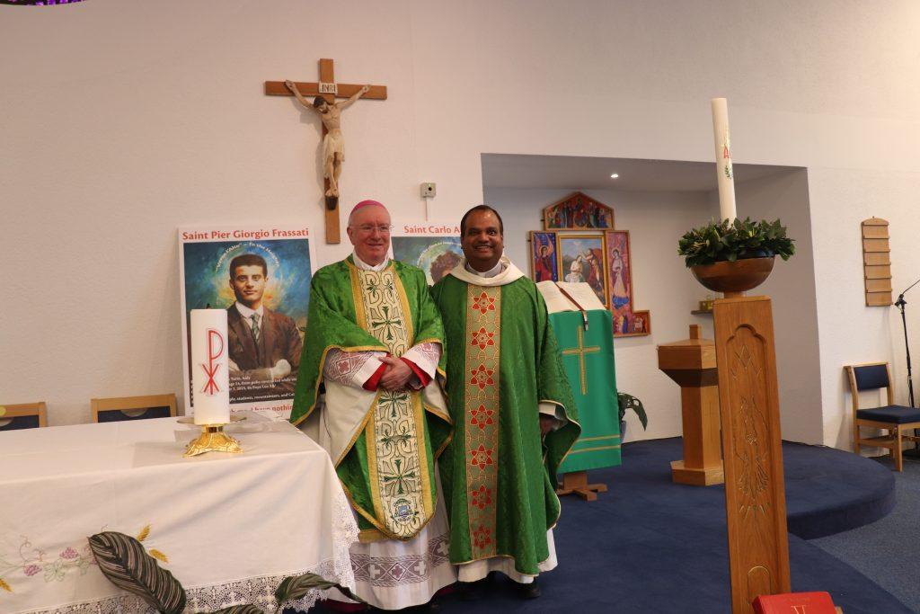 After Mass Bishop Philip met with parishioners, before attending lunch at the Salesian Community House.Â