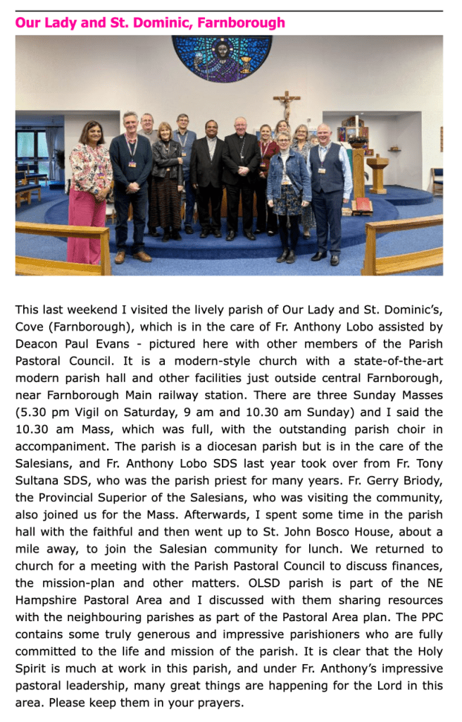 Bishop Philip wrote about his experiences in our parish in Catholic Diocese of Portsmouth e-news. The article has been reproduced below: