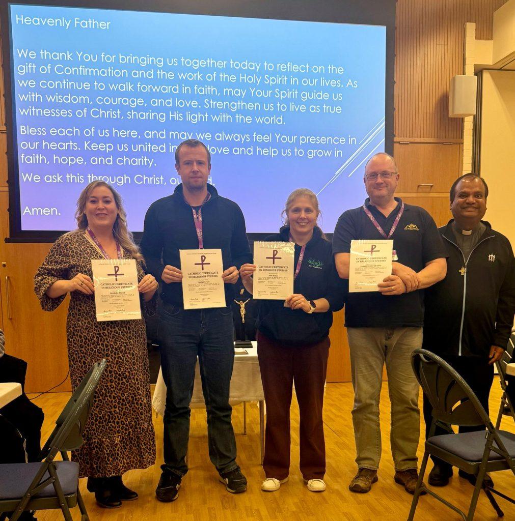 Many congratulations to four of our parishioners (pictured above with Fr Anthony) who recently been awarded the Catholic Certificate in Religious Studies. Michelle Friend reports: