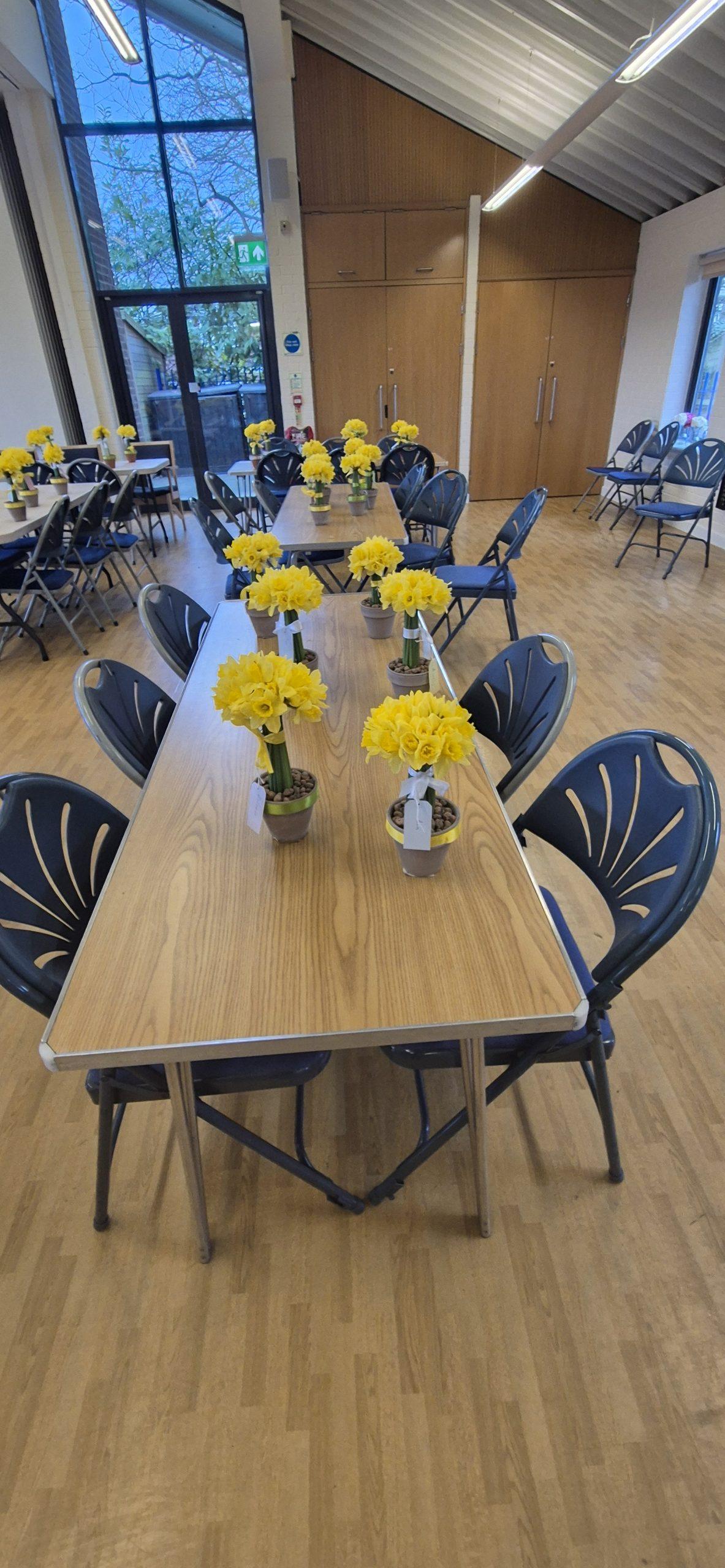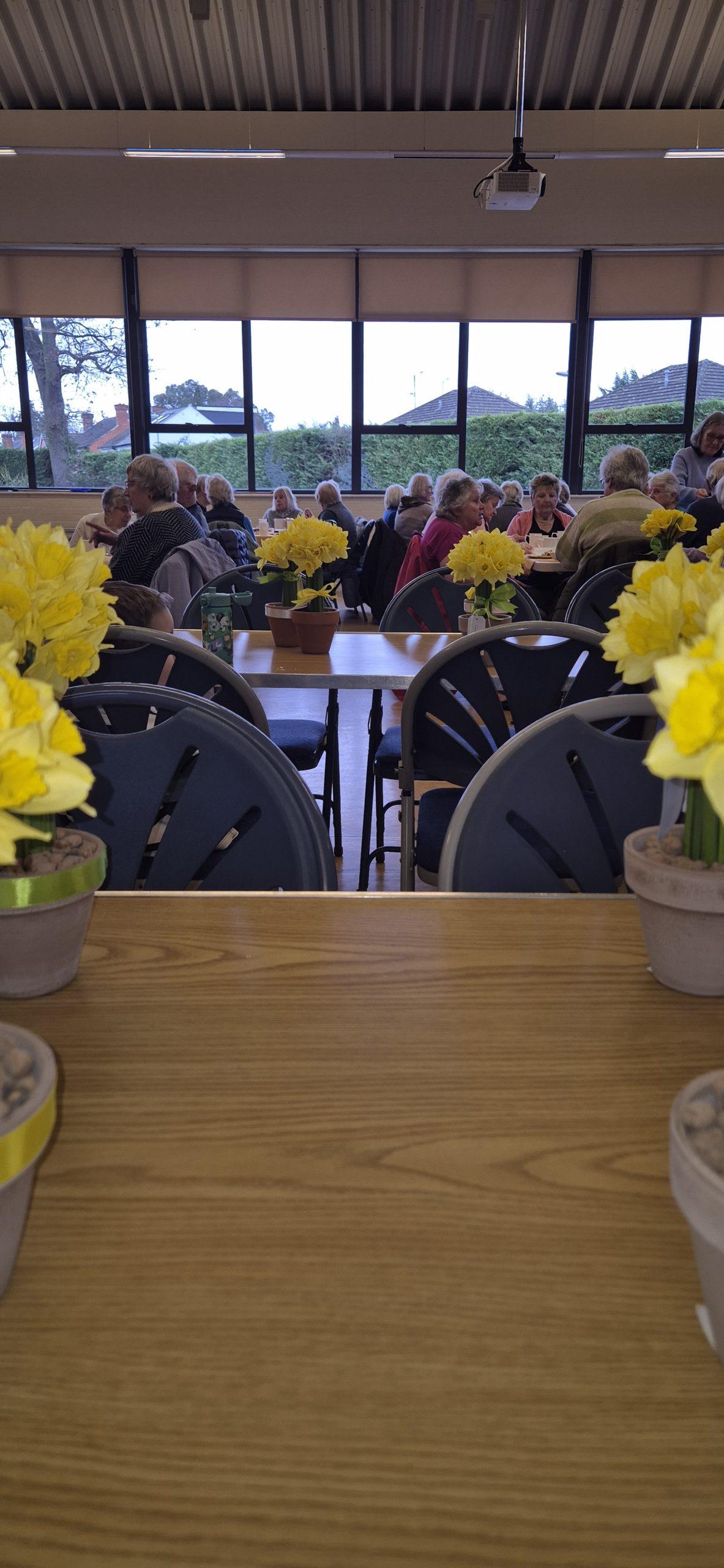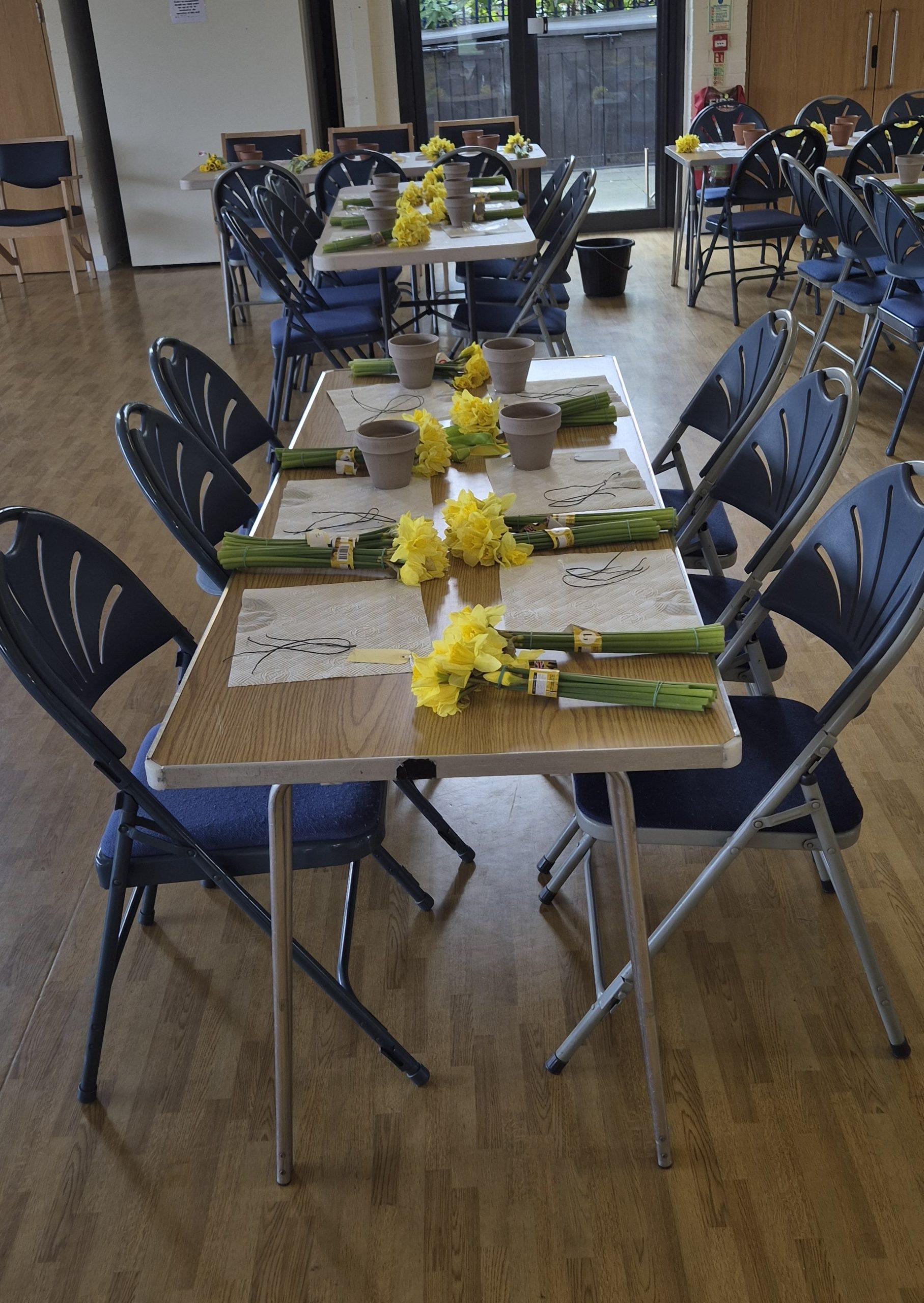 Thank you to Jane Fensome who brought flowerpots, daffodils, ribbons, wire, sticky tape and lots of other bits and bobs. Patiently and slowly, step by step, she showed us how to make a beautiful flower arrangement.  Everyone in the group was greatly impressed with their work of art to take home to display.